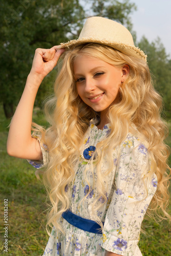 Beautiful Charming Long Curly Blonde Hair Teenage Girl