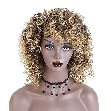 Shangke Frizzy Afro Hair Blonde Mixed Brown Short Curly Wigs